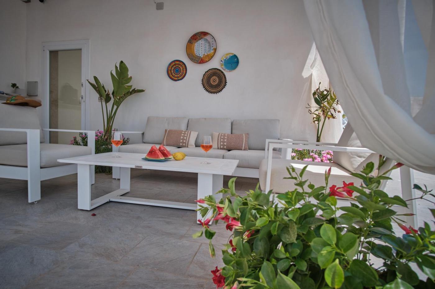 Monolocale Deluxe. Featuring a private entrance, this air-conditioned suite is comprised of a kitchen, 1 bedroom and 1 bathroom with a shower and a bidet. Guests will find a stovetop, a refrigerator, kitchenware and an oven in the kitchen. The suite also has a barbecue. The unit features a washing machine, garden views, a terrace and winechampagne is featured for guests. The unit offers 2 beds. ;