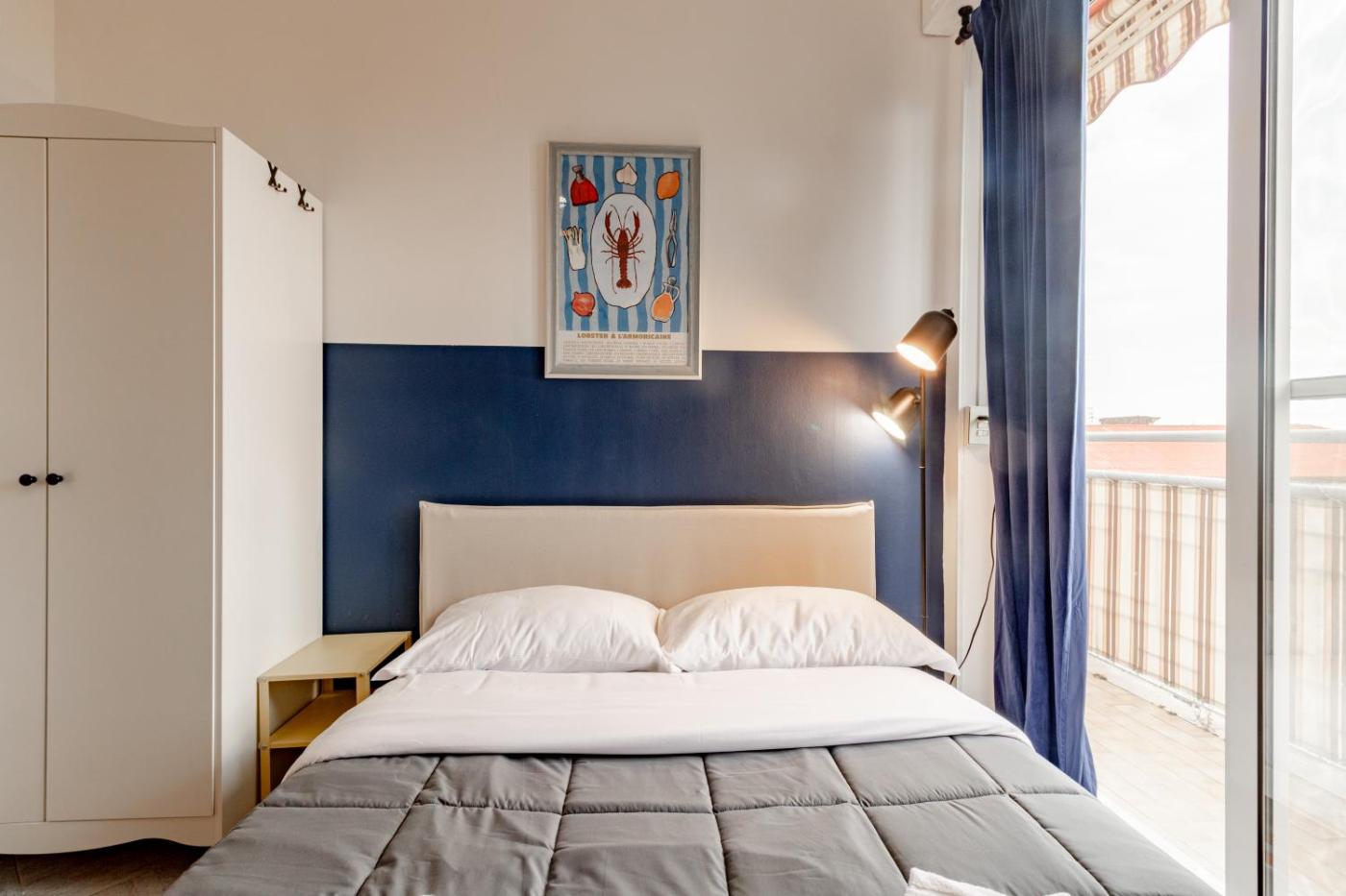 Appartamento con 2 Camere da Letto e Balcone. This spacious apartment includes 1 living room, 2 separate bedrooms and 1 bathroom with a bath and a bidet. Guests can make meals in the kitchen that has a stovetop, a refrigerator, kitchenware and an oven. This apartment is air-conditioned and has a seating area with a flat-screen TV, a washing machine, a tea and coffee maker, a dining area, as well as a wardrobe. The unit has 3 beds.