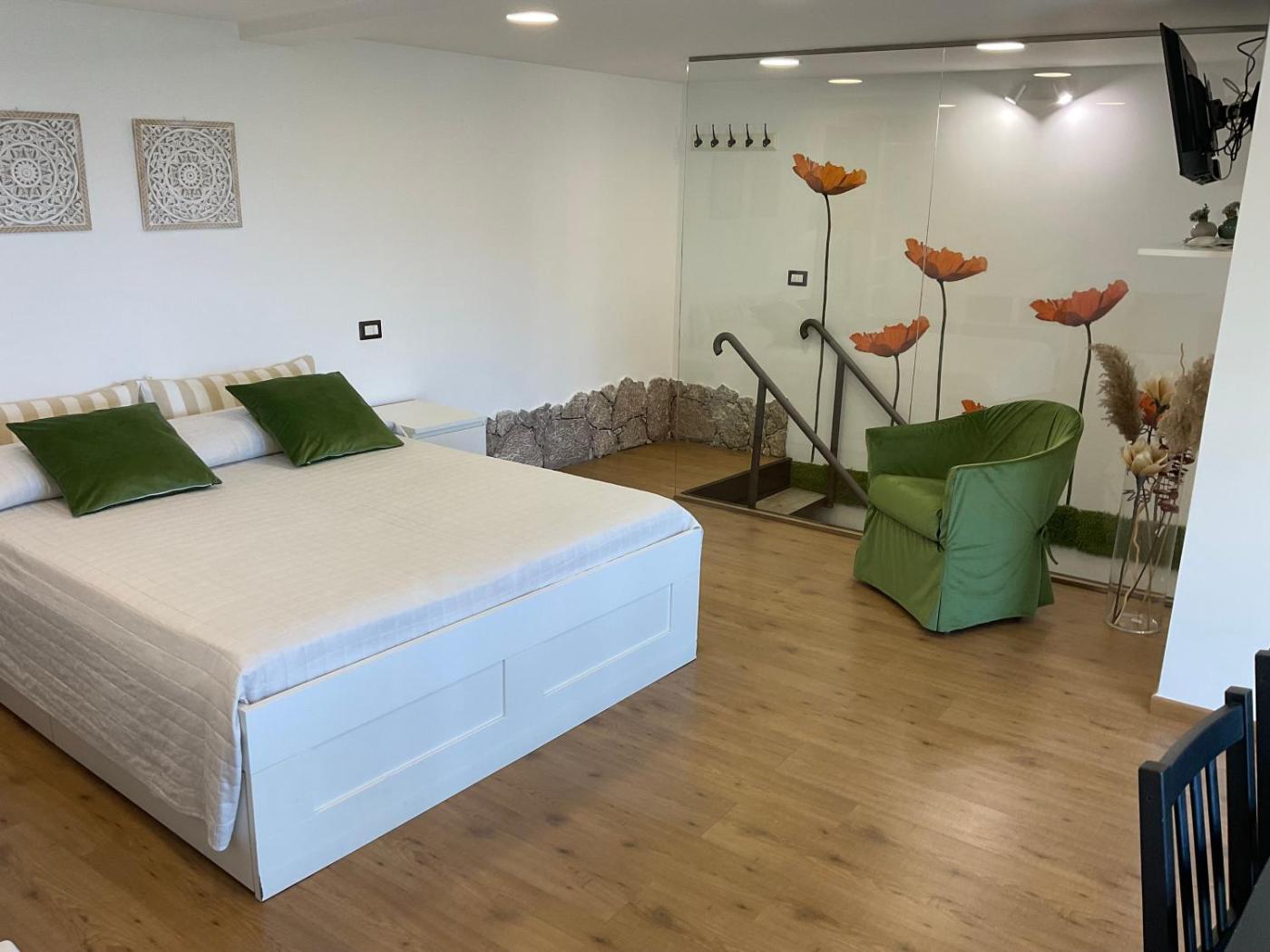 Camera Matrimoniale con Bagno Privato Esterno. Camera matrimoniale climatizzata dotata di ingresso indipendente, terrazza con vista sul mare e bagno privato completo di doccia. L’alloggio dispone di 1 letto. ;